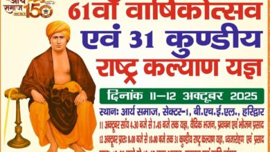 हरिद्वार में आज 61वां वार्षिकोत्सव व 31 कुंडीय राष्ट्रीय कल्याण यज्ञ शुरू होगा-डॉ.बलवीर तलवार हरिद्वार। आर्य समाज,बीएचईएल हरिद्वार द्वारा सेक्टर…