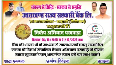 देहरादून, 11 अक्टूबर 2025 “निक्षेप अभियान पखवाड़ा” से जागी वित्तीय चेतना उत्तराखण्ड राज्य सहकारी बैंक ने शुरू किया जनसंपर्क का…