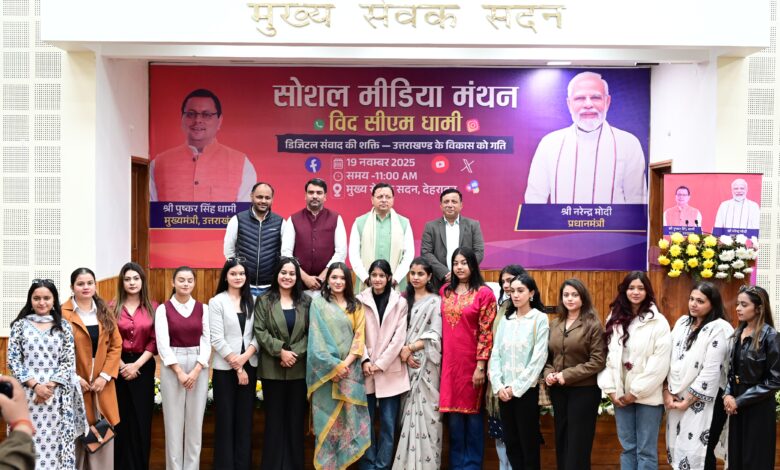 बुधवार को मुख्य सेवक सदन में आयोजित “सोशल मीडिया मंथन” कार्यक्रम को संबोधित करते हुए, मुख्यमंत्री पुष्कर सिंह धामी ने कहा कि आज सोशल मीडिया संचार और सूचना के आदान-प्रदान का सबसे तेज और प्रभावी माध्यम बन चुका है। दुनिया के किसी भी कोने में बैठा व्यक्ति अपने विचार और अपना दृष्टिकोण को कुछ ही क्षणों में पूरे विश्व तक पहुँचा सकता है। सोशल मीडिया ने आम नागरिक की आवाज को मंच प्रदान किया है। यही कारण है कि आज विश्व की बड़ी से बड़ी घटना से लेकर एक गांव की छोटी सी समस्या तक कुछ ही सेकंड में लाखों-करोड़ों लोगों तक पहुँच जाती है।