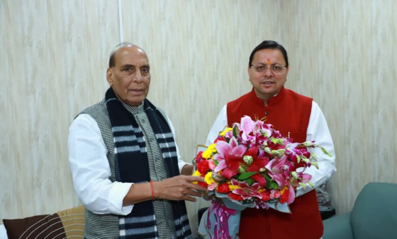 नई दिल्ली में मुख्यमंत्री धामी ने रक्षा मंत्री राजनाथ सिंह से की शिष्टाचार भेंट