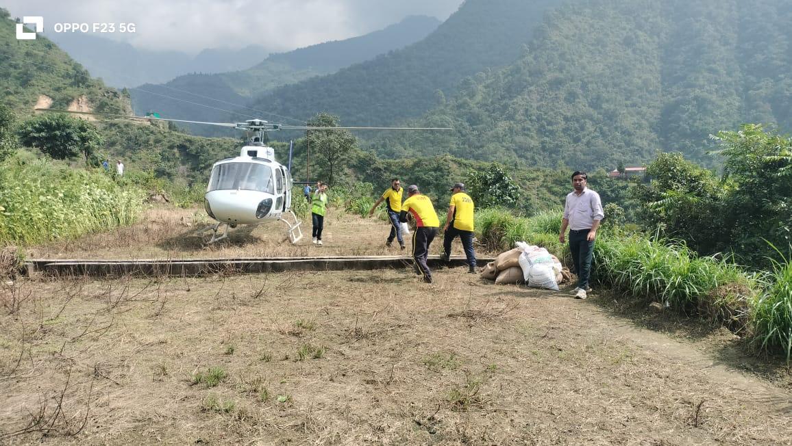 डीएम ने फुलेत और चमरौली आपदा प्रभावित गाँव के ग्रामीणों से किए वादा को पूरा कर, हैली से भिजवाए सितंबर माह का खाद्यान्न