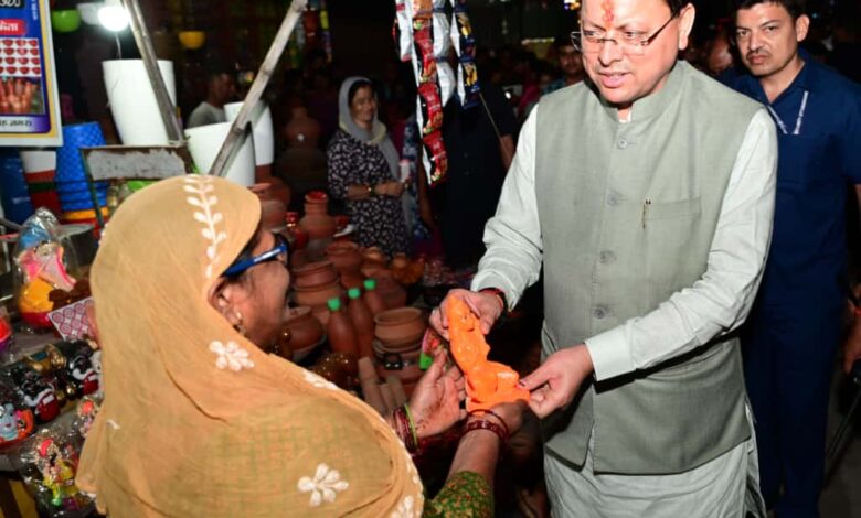 मुख्यमंत्री पुष्कर सिंह धामी ने आज अपने गृह क्षेत्र खटीमा में ‘स्वदेशी अपनाओ’ अभियान के तहत पारंपरिक मिट्टी के दियों और स्थानीय रूप से निर्मित वस्तुओं की खरीदारी की।
