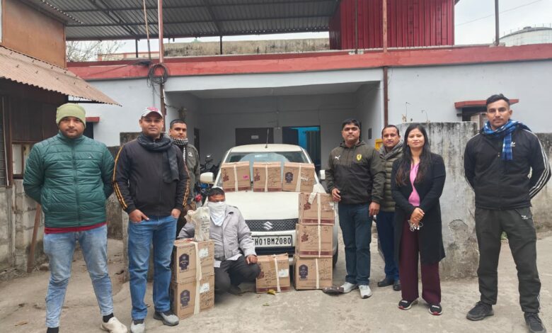 देहरादून। अवैध शराब तस्करी की रोकथाम हेतु आबकारी विभाग की टीम ऋषिकेश एवं जनपदीय प्रवर्तन दल देहरादून की संयुक्त टीम के द्वारा आबकारी निरीक्षक श्रीमती प्रेरणा बिष्ट के नेतृत्व में आज 23.01.2026 को तड़के सुबह रायपुर क्षेत्र में मुखबिर खास की सूचना पर सिल्ला मोटर मार्ग सरखेत के पास चंडीगढ़ राज्य से अवैध शराब परिवहन / तस्करी करते एक स्विफ्ट डिजायर कार संख्या CH01BM 2080 से 09 पेटियों के अंदर कुल 108 बोतल Royel stag whisky एवं Imperial blue whisky अंग्रेजी शराब बरामद हुई सभी बोतलों पर फॉर सेल इन चंडीगढ़ ओनली अंकित पाया गया मौके पर वाहन चालक/ अभियुक्त सुरेश कुमार पुत्र रामस्वरूप निवासी रणजीत नगर खरड मोहाली पंजाब को गिरफ्तार कर आबकारी अधिनियम की धारा 63/72 के अंतर्गत मुकदमा पंजीकृत किया गया अभियुक्त चंडीगढ़ से अवैध शराब परिवहन कर उत्तराखंड राज्य में अवैध रूप से बिक्री हेतु ला रहा था अवैध शराब तस्करी से राज्य सरकार को राजस्व हानि के साथ साथ इसके सेवन से जान माल की हानि होने की संभावना से इनकार नहीं किया जा सकता है।