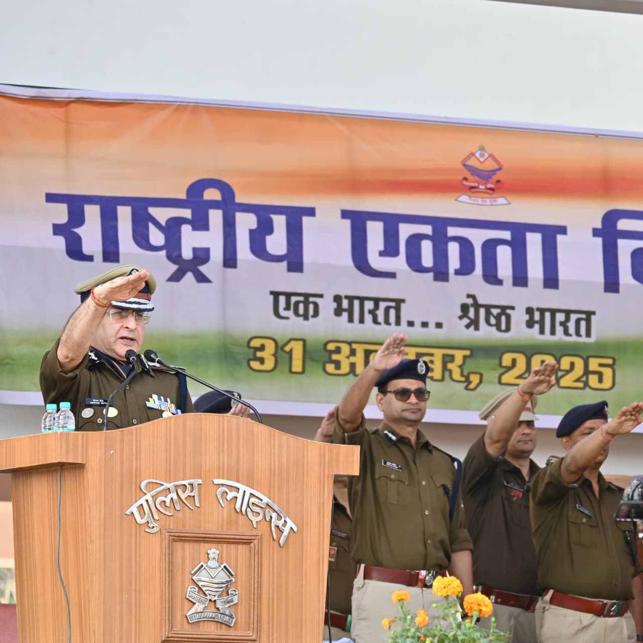 देश के प्रथम गृहमंत्री एवं लौह पुरुष सरदार वल्लभभाई पटेल जी की 150वीं जयंती “राष्ट्रीय एकता दिवस” के अवसर पर आज पुलिस लाइन, देहरादून में आयोजित कार्यक्रम में दीपम सेठ, पुलिस महानिदेशक, उत्तराखण्ड ने पुलिस मुख्यालय के वरिष्ठ अधिकारियों सहित उपस्थित समस्त पुलिस बल को राष्ट्र की एकता, अखंडता एवं देश की सुरक्षा के प्रति समर्पण की शपथ दिलाई।
