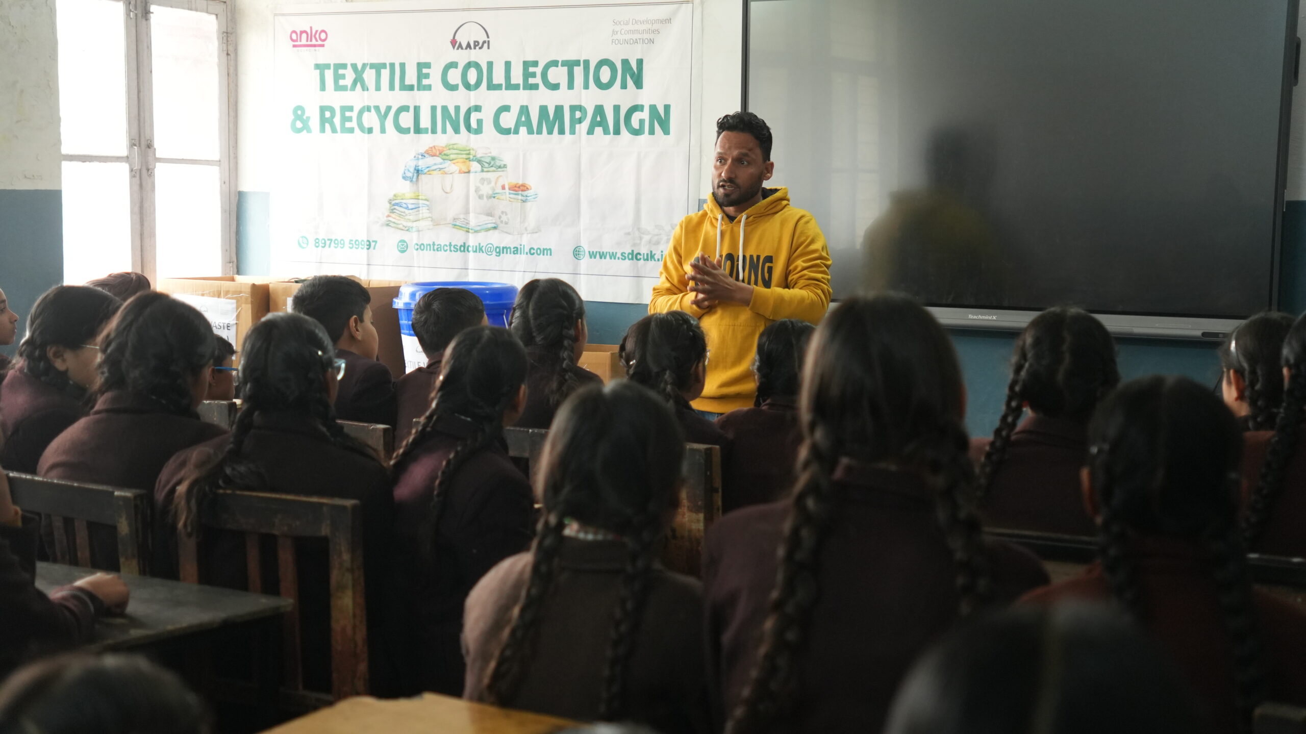 बढ़ती टेक्सटाइल (कपड़ा) अपशिष्ट की समस्या को देखते हुए सोशल डेवलपमेंट फॉर कम्युनिटीज (एसडीसी) फाउंडेशन ने एन्को सोर्सिंग एवं बीटीआर ग्लोबल के ब्रांड वापसी के सहयोग से “टेक्सटाइल कलेक्शन एवं रीसाइक्लिंग अभियान” के प्रथम चरण को सफलतापूर्वक पूर्ण किया।