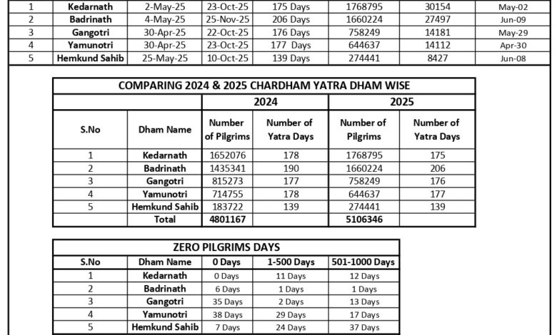 2024 और 2025 में यात्रा के कुल दिनों की संख्या लगभग समान रही, लेकिन बद्रीनाथ में इस वर्ष विशेष वृद्धि दर्ज हुई। 2024 में 190 दिनों की तुलना में 2025 में बद्रीनाथ धाम 206 दिनों तक खुला रहा यानी 16 अतिरिक्त यात्रा दिवस रहे।