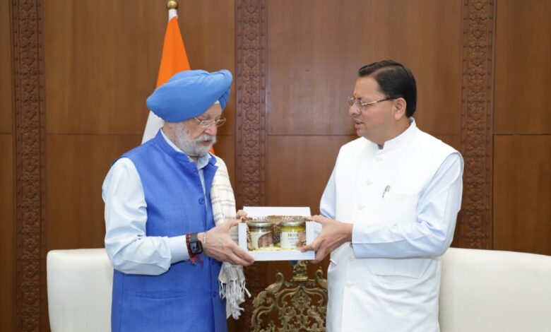 मुख्यमंत्री पुष्कर सिंह धामी ने केंद्रीय पेट्रोलियम एवं प्राकृतिक गैस मंत्री हरदीप सिंह पुरी से नई दिल्ली स्थित कर्तव्य भवन में भेंट कर उत्तराखण्ड की भौगोलिक परिस्थितियों एवं आपदाजन्य संवेदनशीलता के दृष्टिगत विभिन्न महत्वपूर्ण विषयों पर विस्तृत चर्चा की।